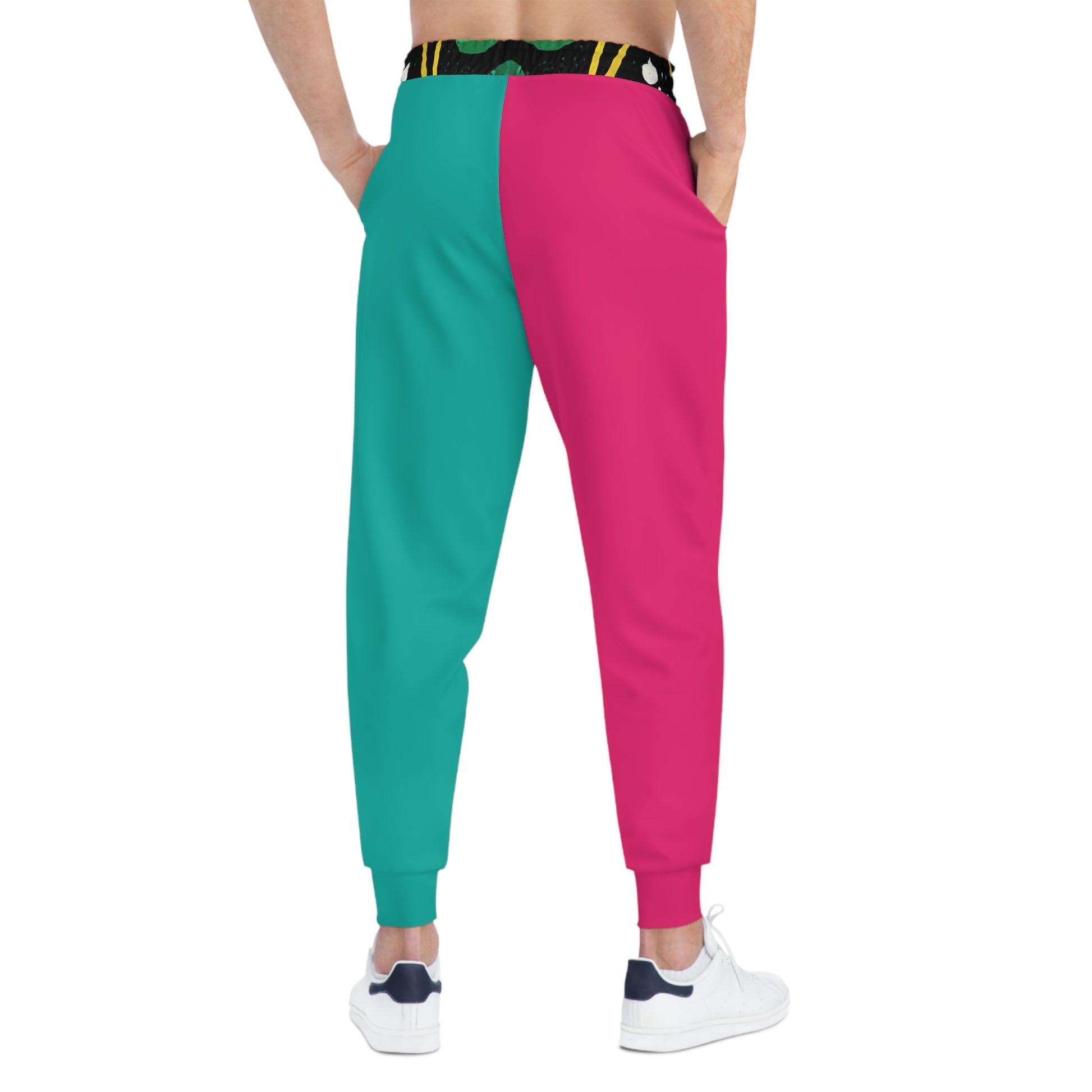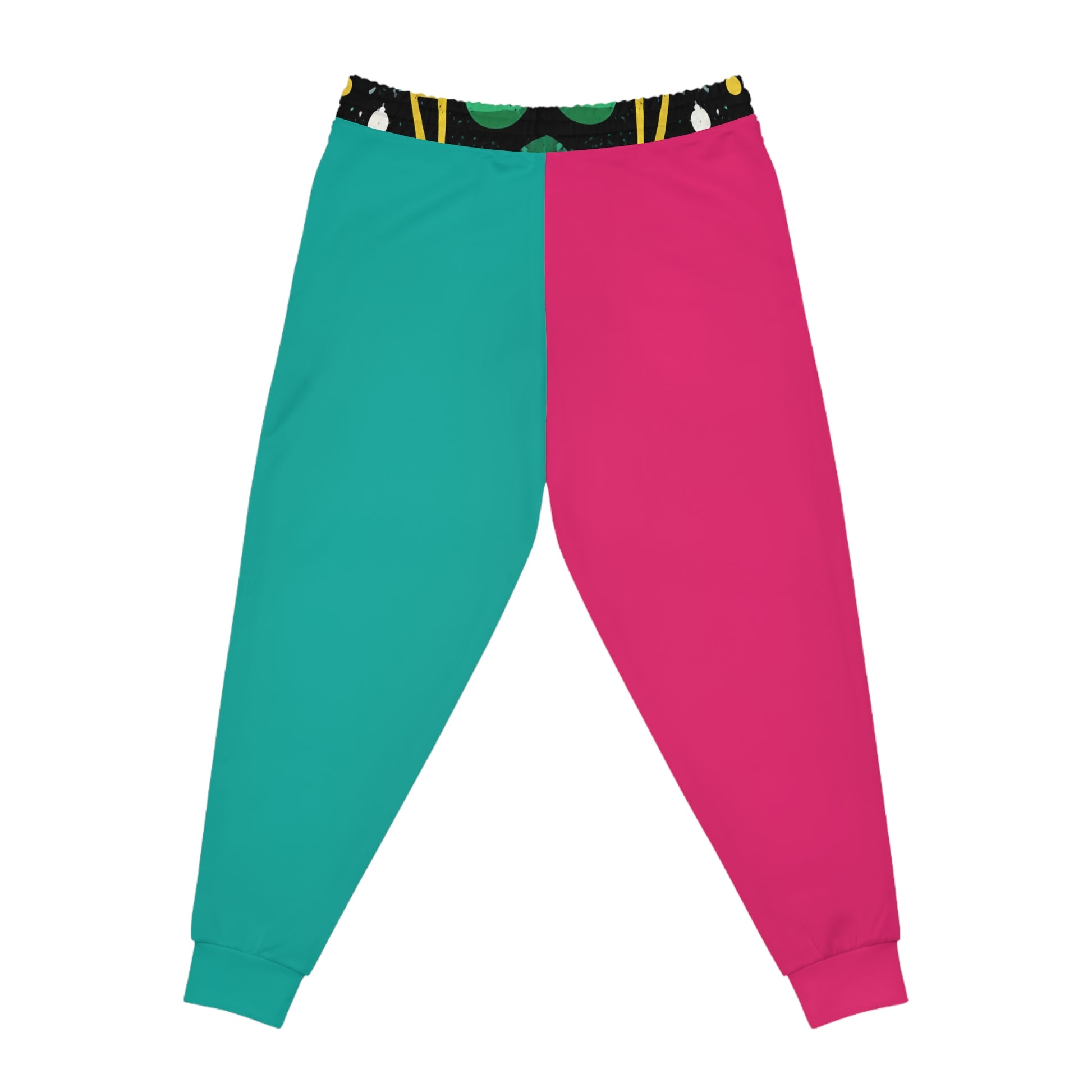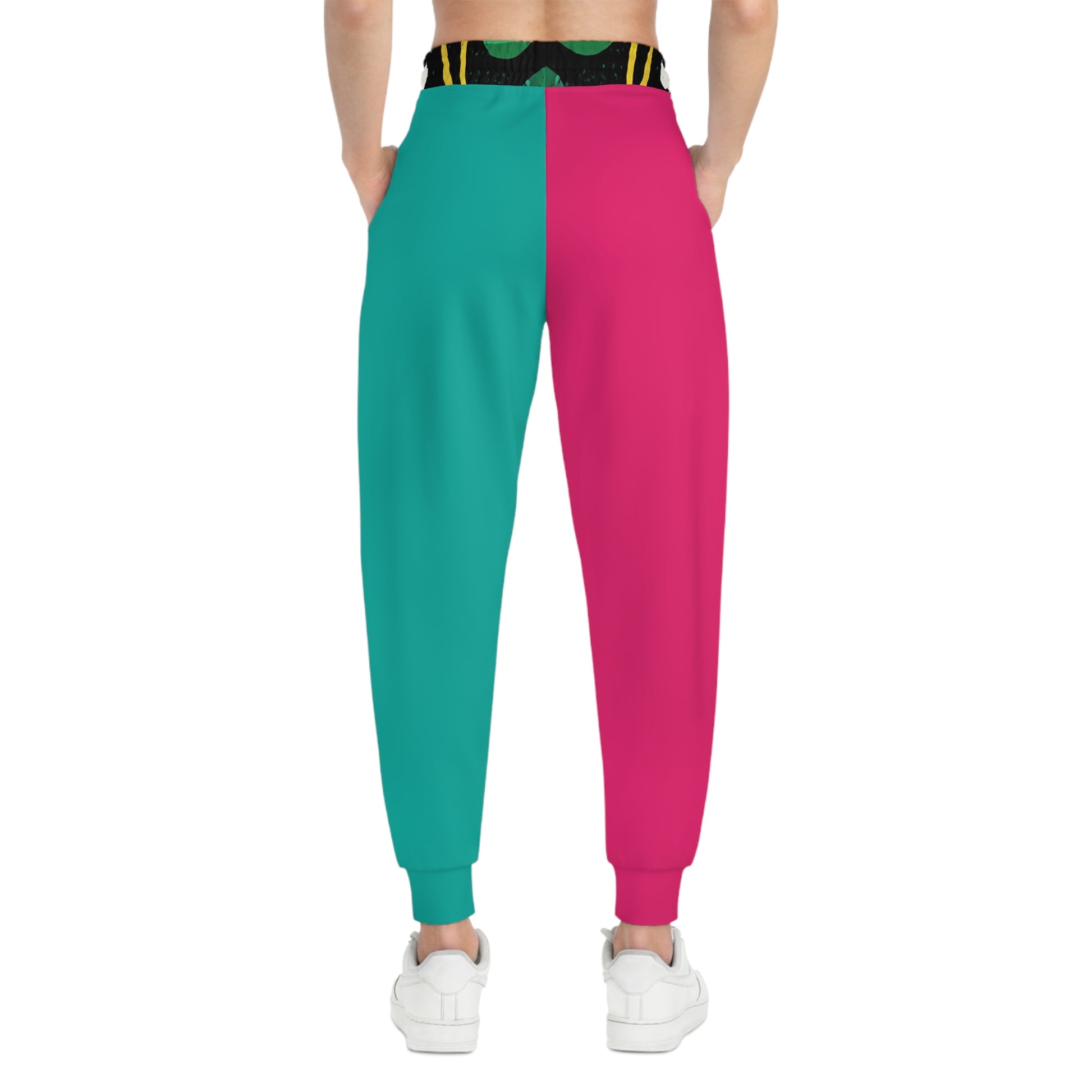 Colorblock Athletic Joggers — Pink & Teal Split Design