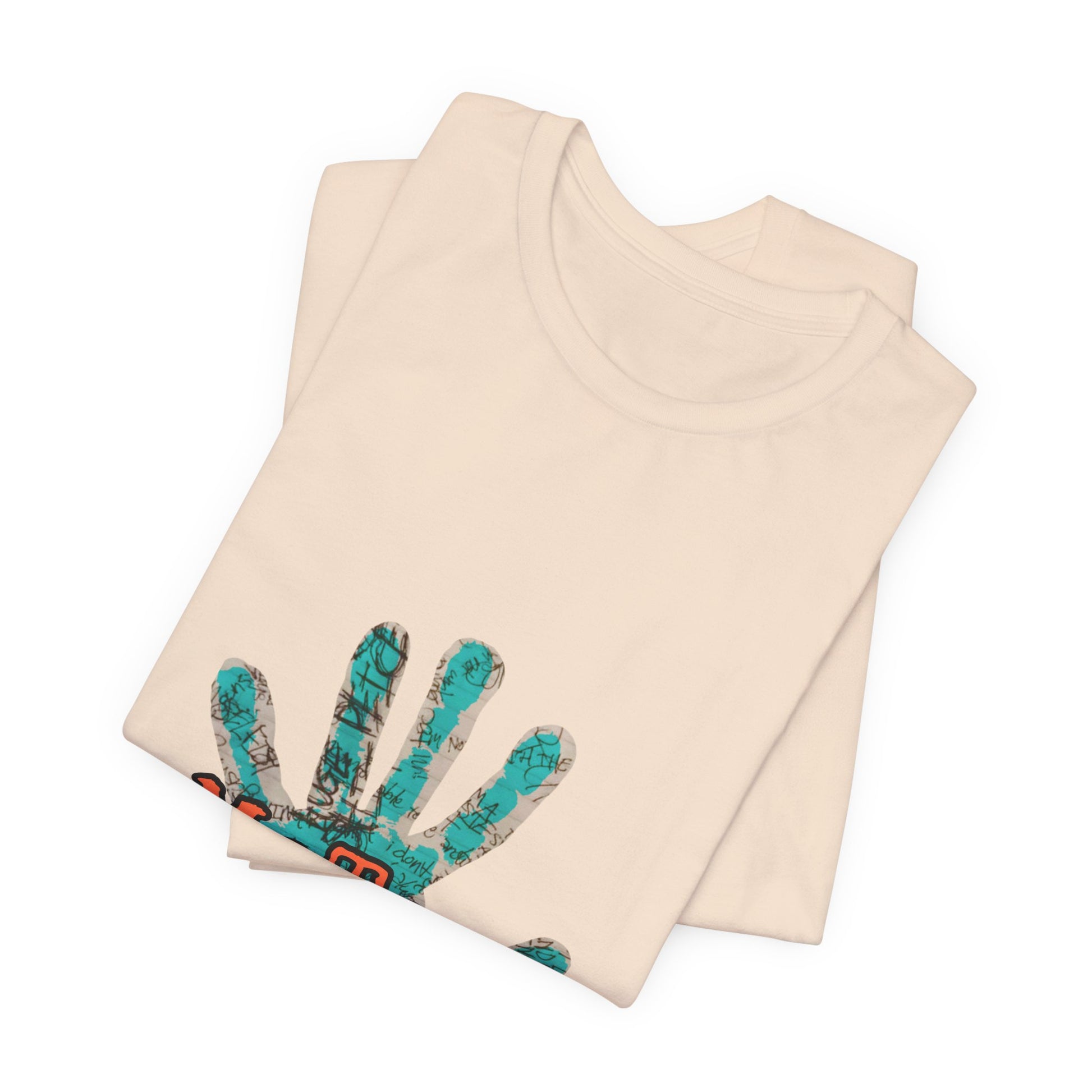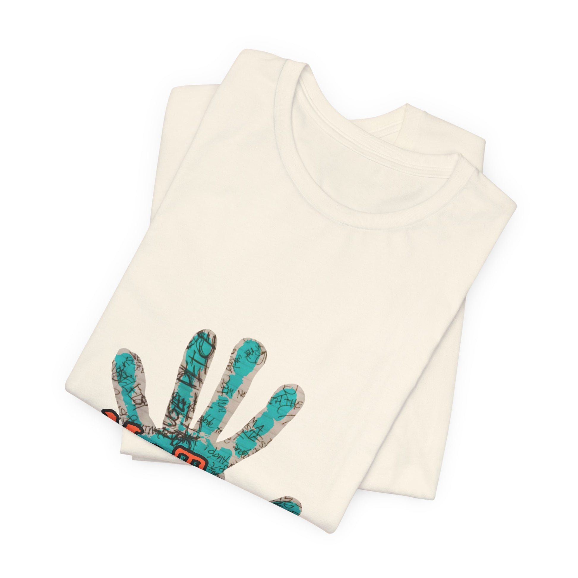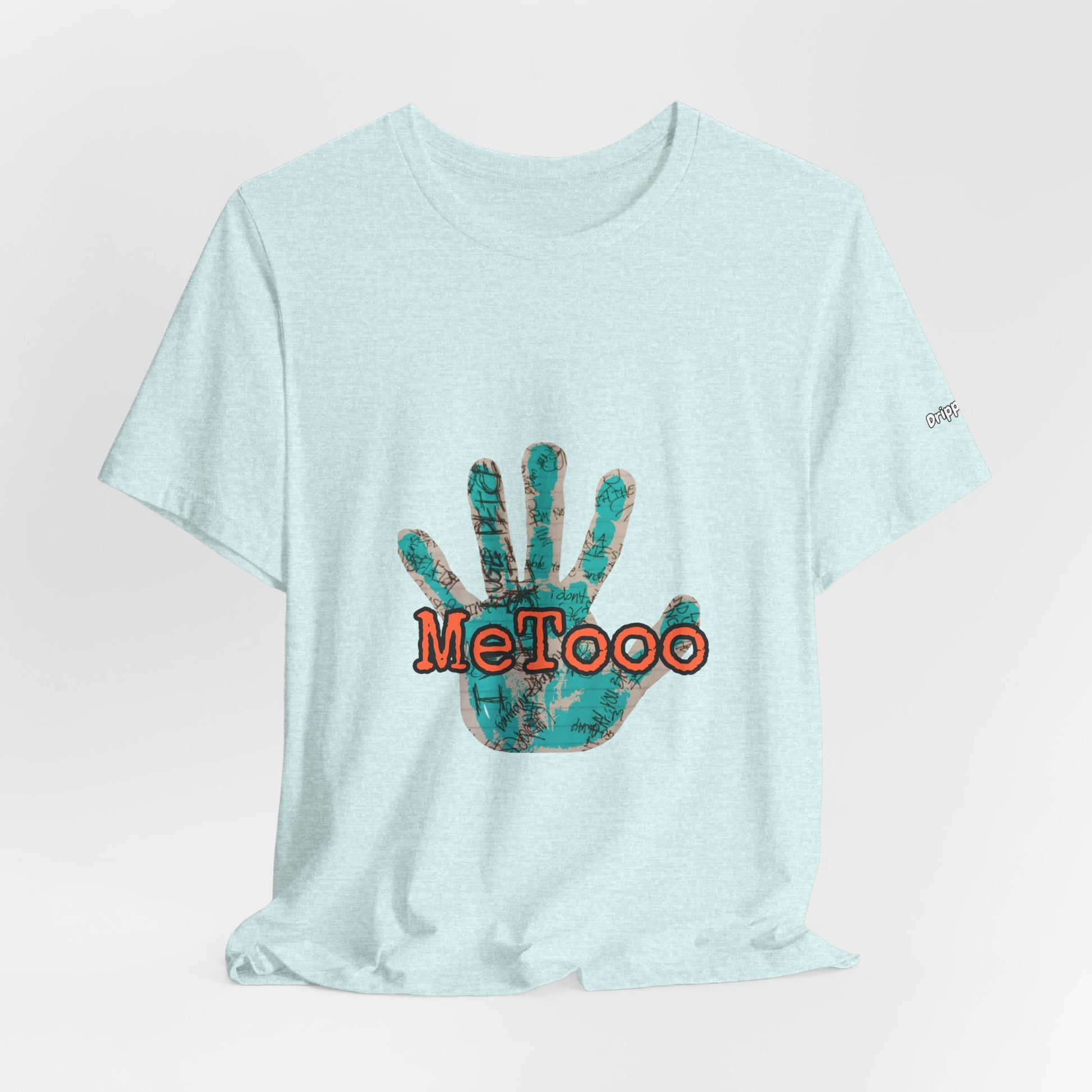 This lightweight crew-neck tee carries a quiet but powerful message. The front features a textured teal handprint with bold, weathered lettering reading “MeToo” layered across the palm — a wearable statement that blends artful grunge with sincere solidarity. The fabric drapes softly and breathes easily, so it moves with you through rallies, coffee-shop conversations, or slow afternoons when you want your values visible but not shouted. Simple, honest, and made to last, it sits cleanly under a jacket or stands alone as a conversation starter.
