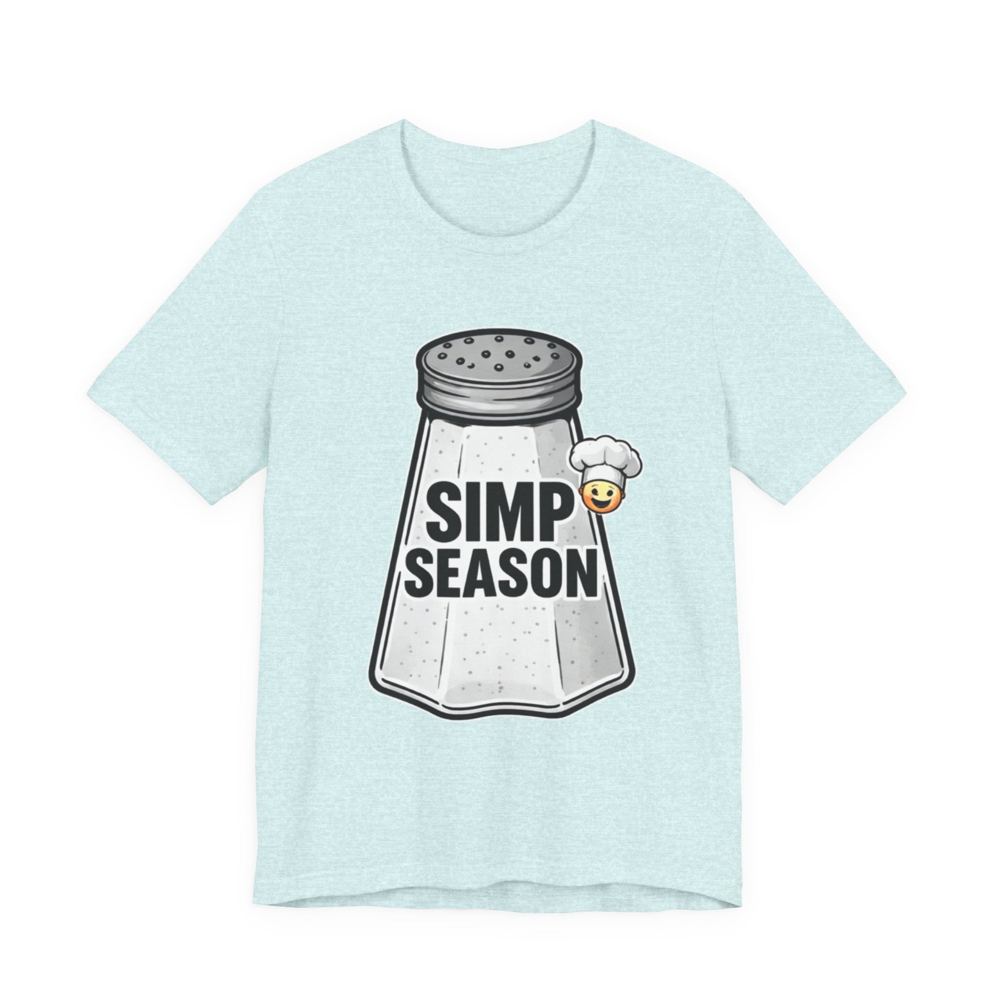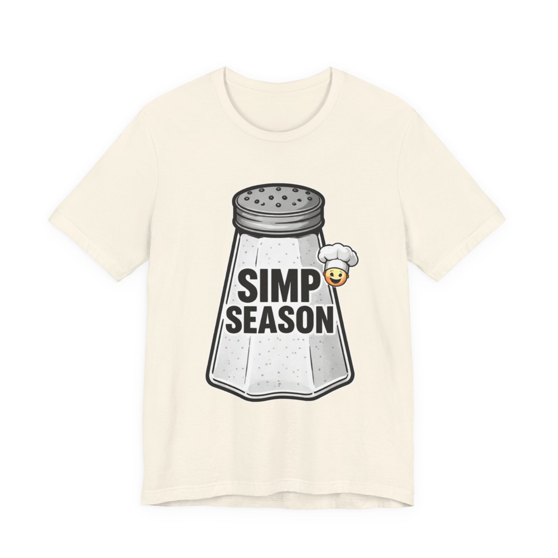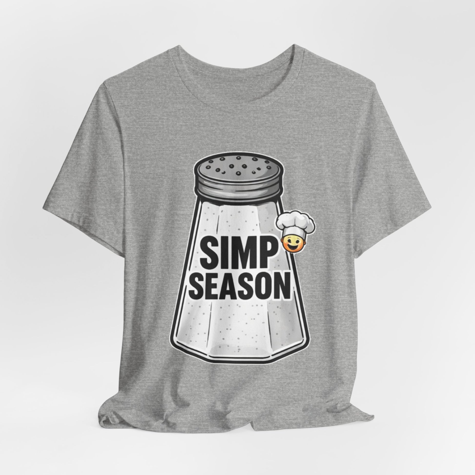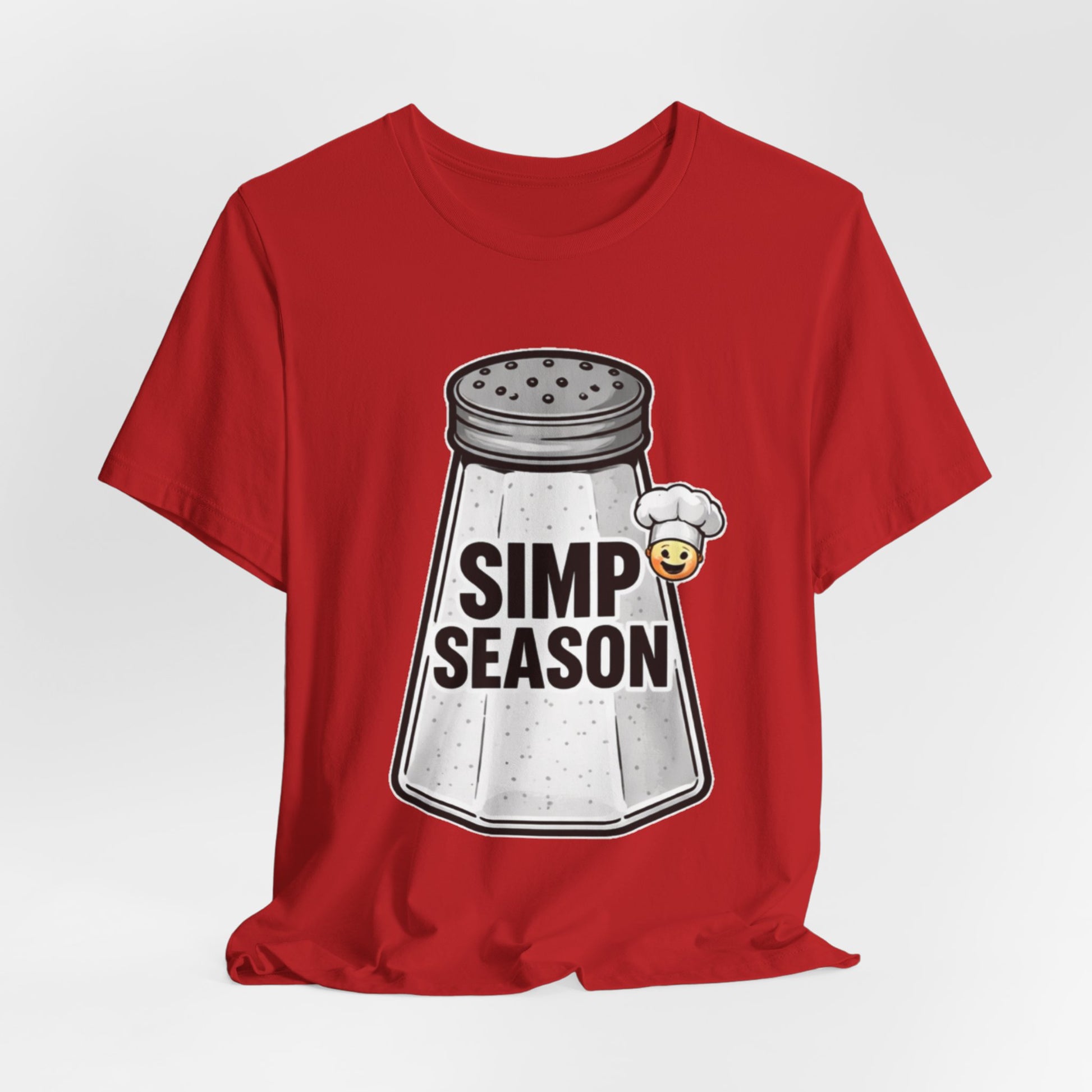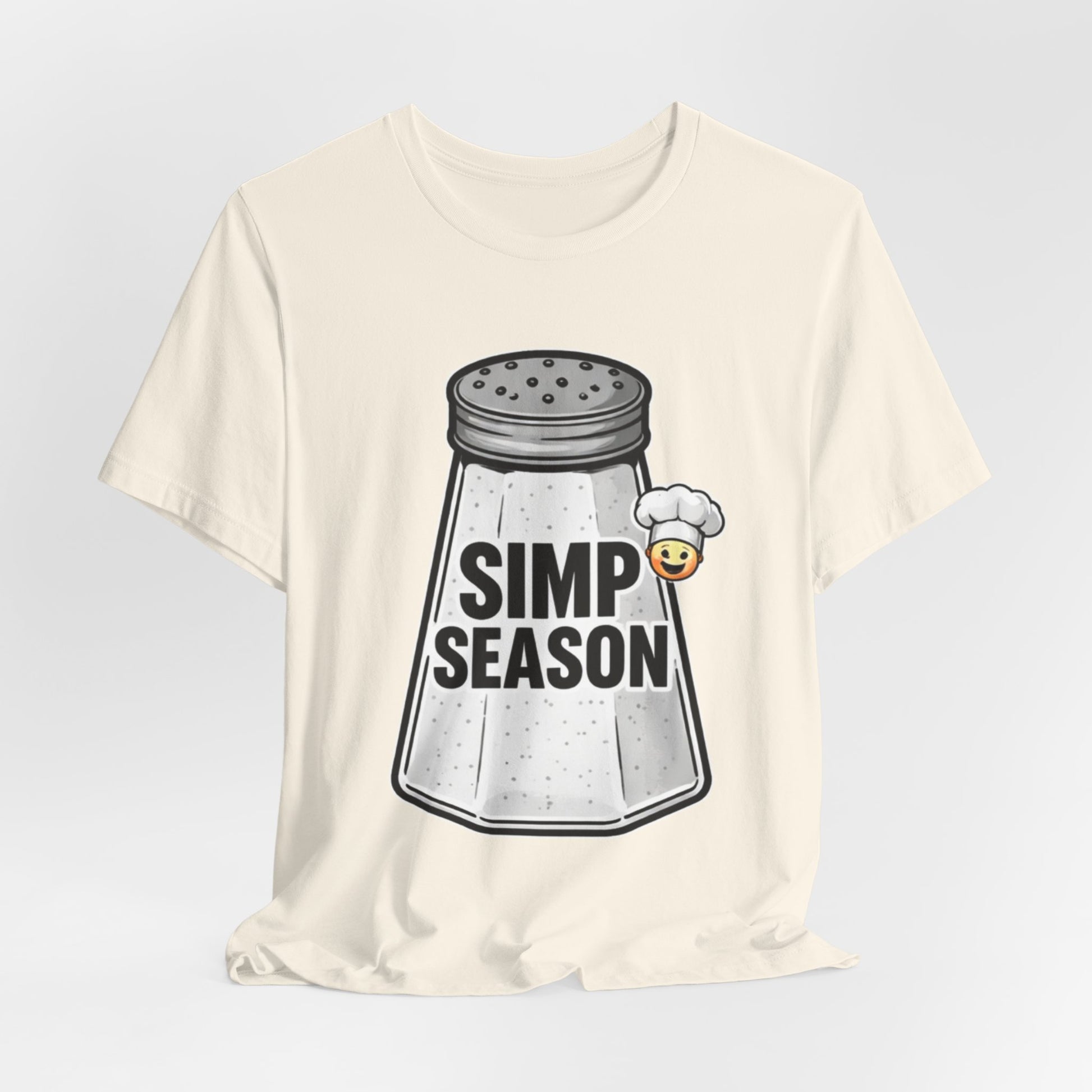 A lightweight, everyday tee with playful attitude. This cotton jersey shirt features a bold front graphic of a vintage salt shaker stamped with the cheeky phrase “SIMP SEASON” and a tiny blushing emoji—an ironic nod to wholehearted feels and social-media humor. The fit sits close to the body without being tight, with a classic crew neckline and side seams that keep the shape wash after wash. Soft, breathable Airlume combed and ring-spun cotton makes it easy to layer or wear on its own. Wear it to signal a mood, start conversations, or lounge with friends who get the joke.