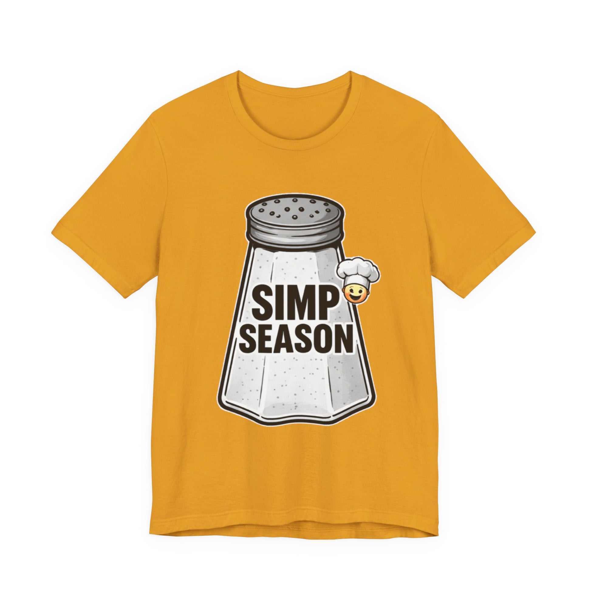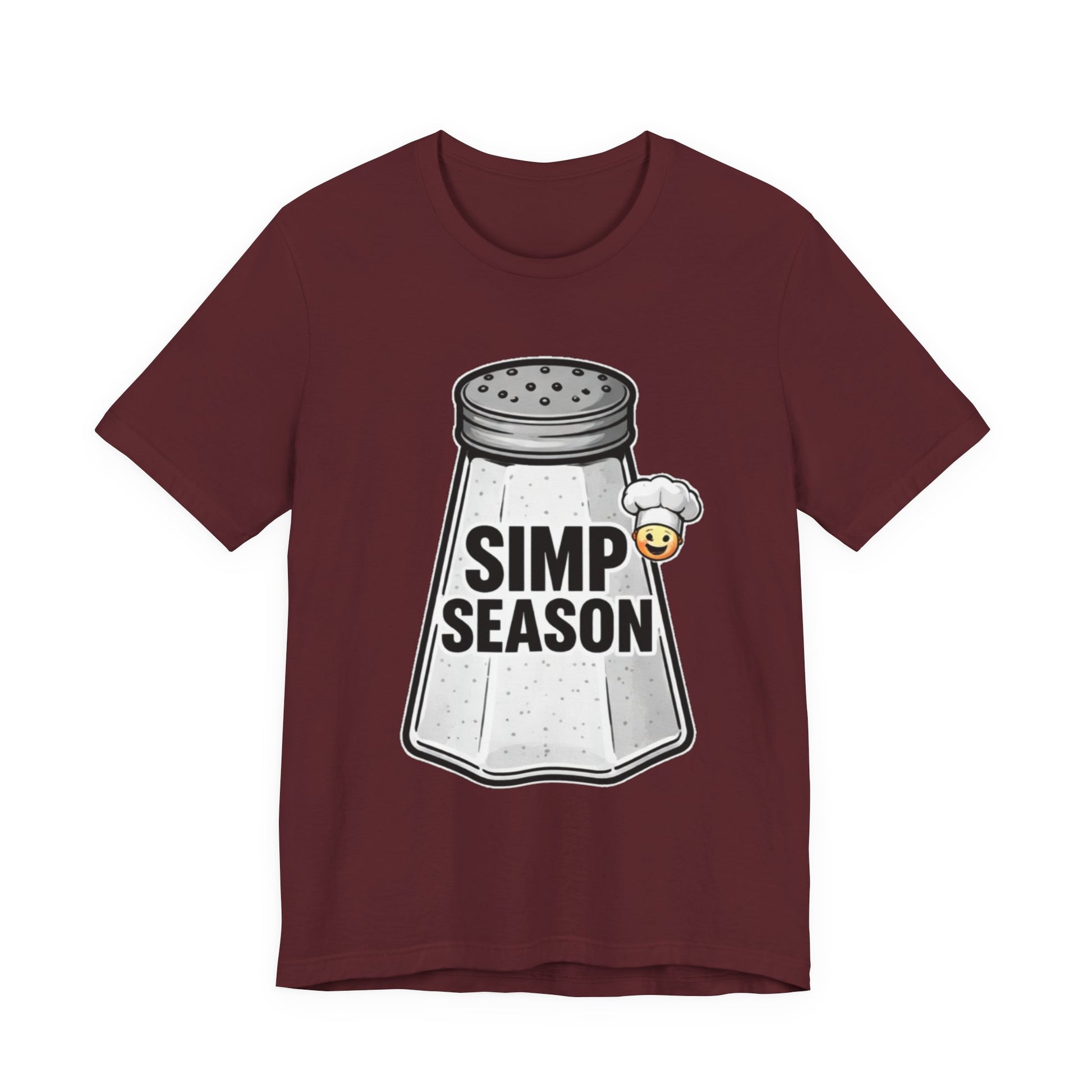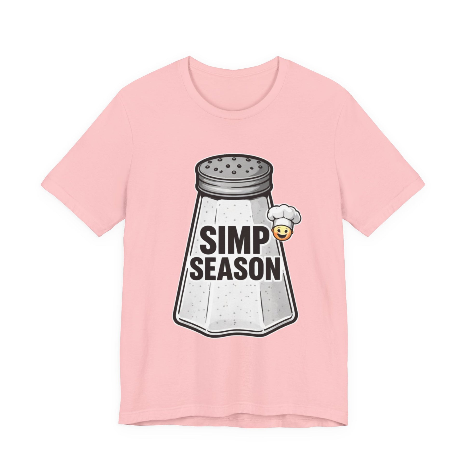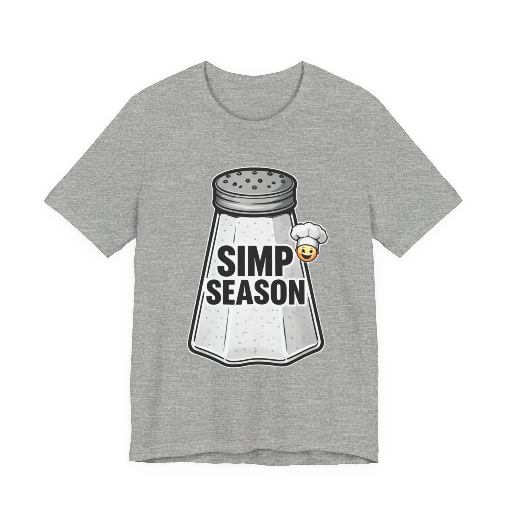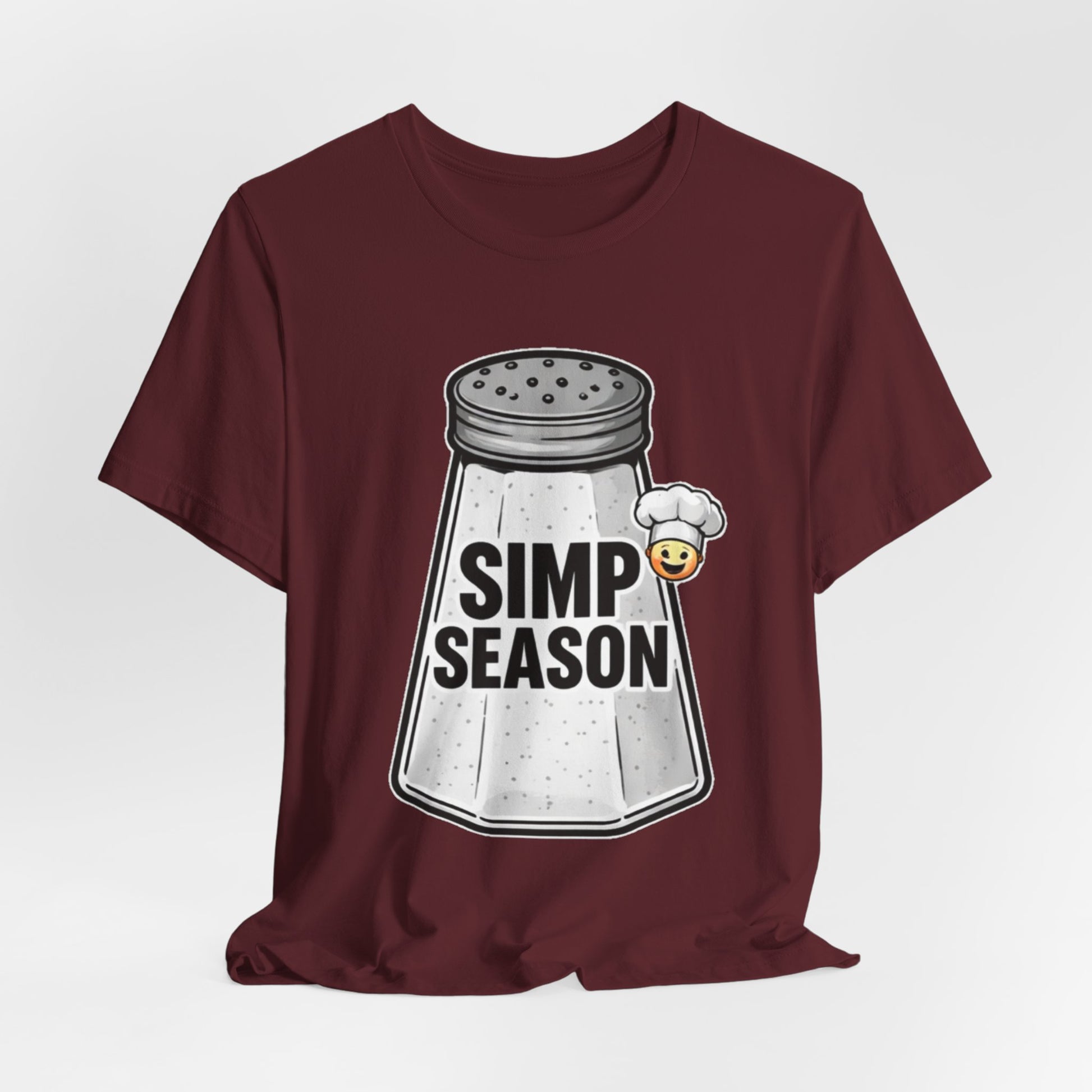 A lightweight, everyday tee with playful attitude. This cotton jersey shirt features a bold front graphic of a vintage salt shaker stamped with the cheeky phrase “SIMP SEASON” and a tiny blushing emoji—an ironic nod to wholehearted feels and social-media humor. The fit sits close to the body without being tight, with a classic crew neckline and side seams that keep the shape wash after wash. Soft, breathable Airlume combed and ring-spun cotton makes it easy to layer or wear on its own. Wear it to signal a mood, start conversations, or lounge with friends who get the joke.