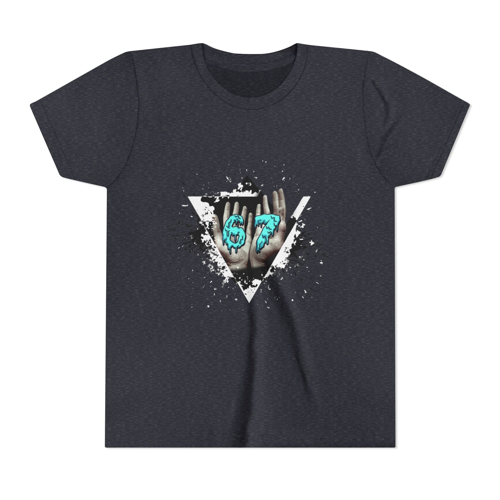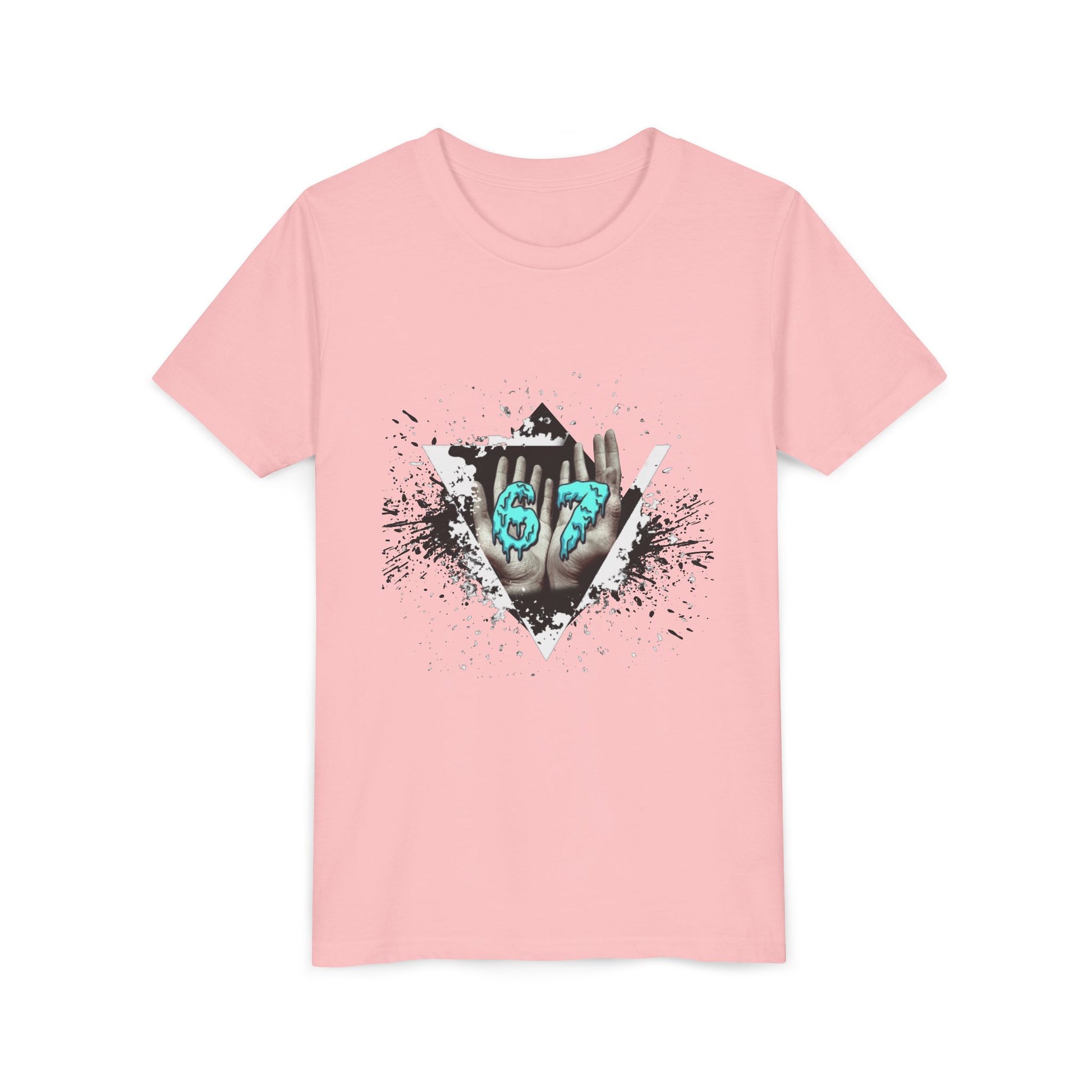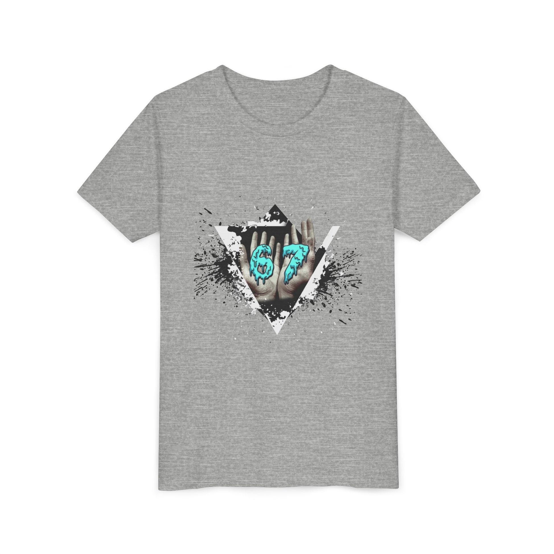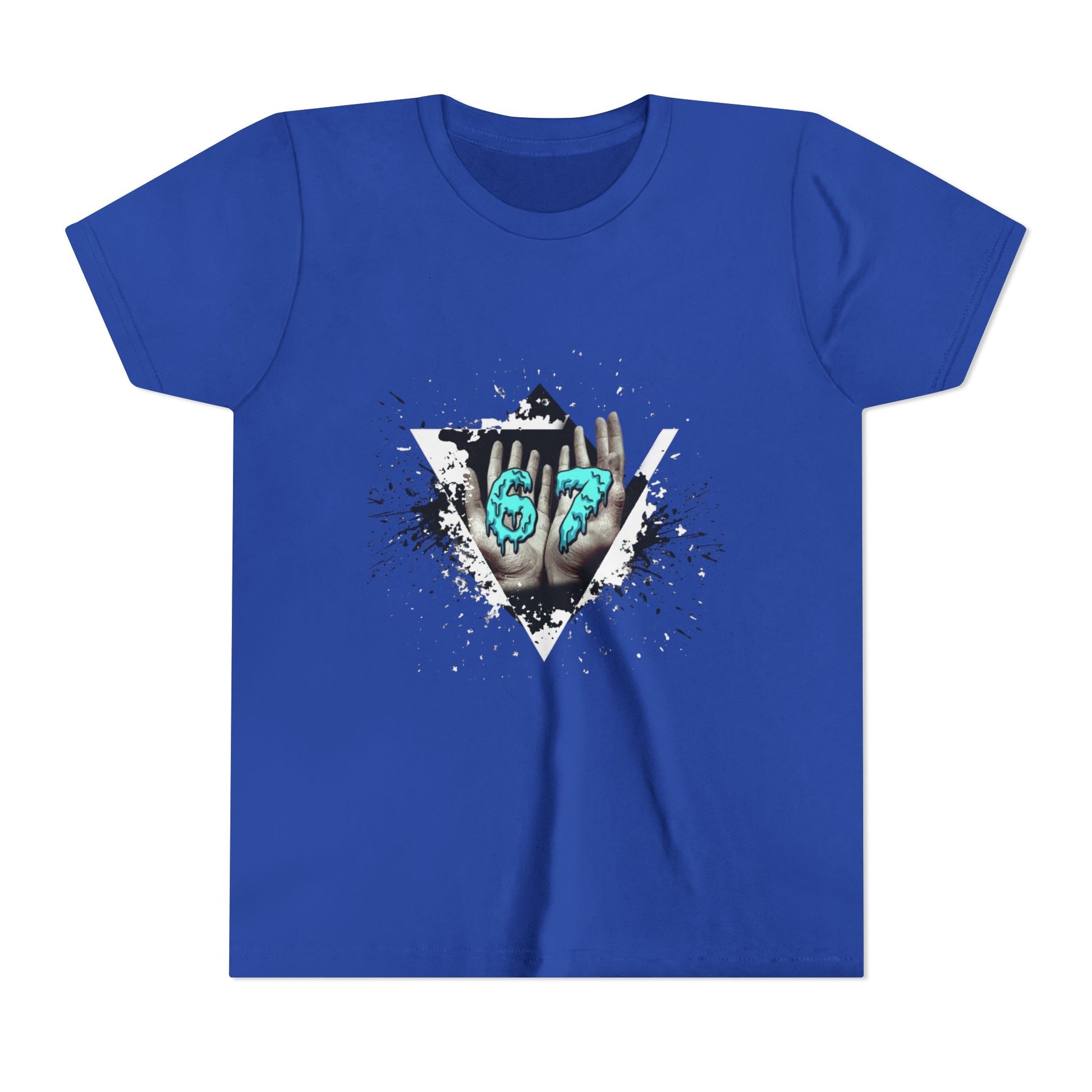 Youth Tee — Grunge 67 Graphic Tee (Aqua Neon Number)