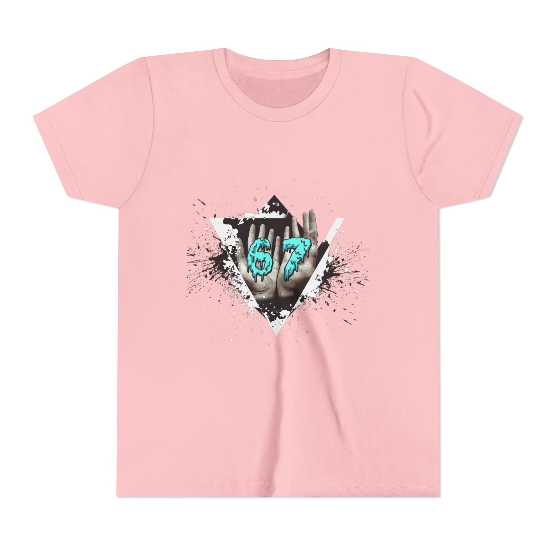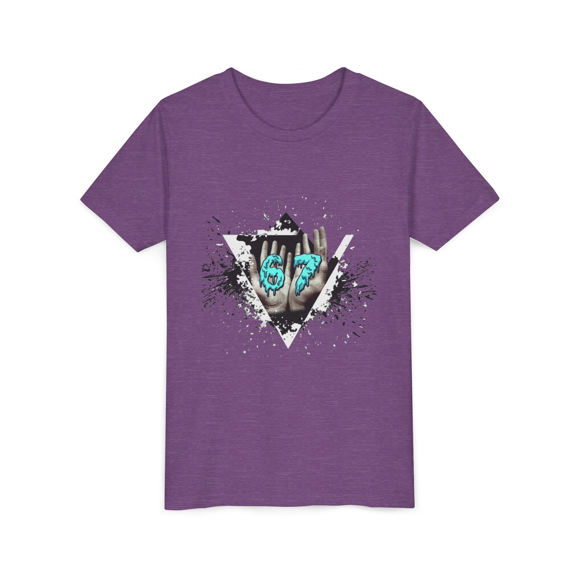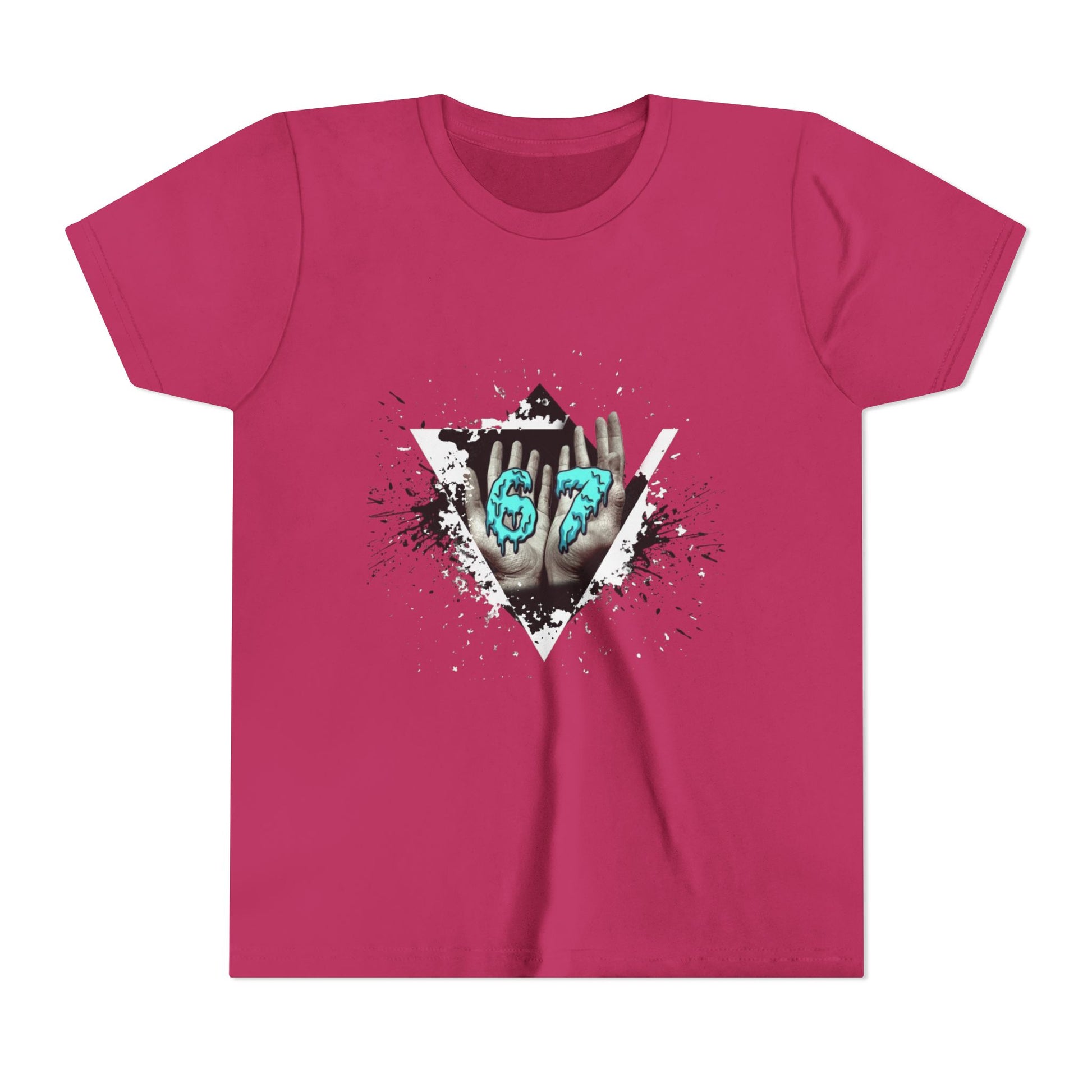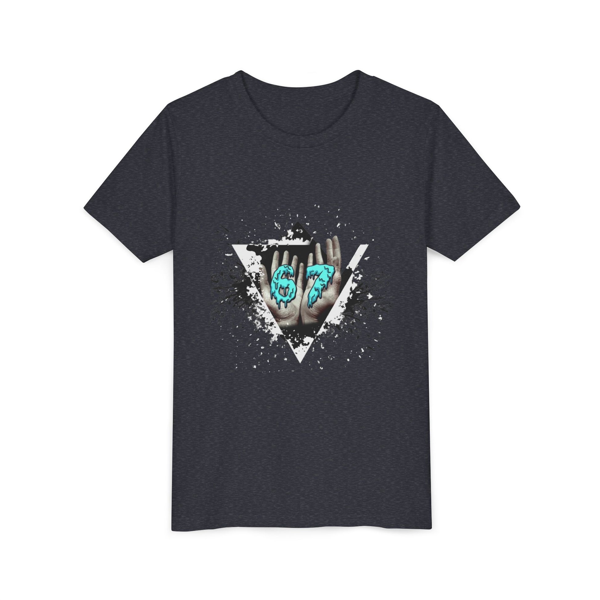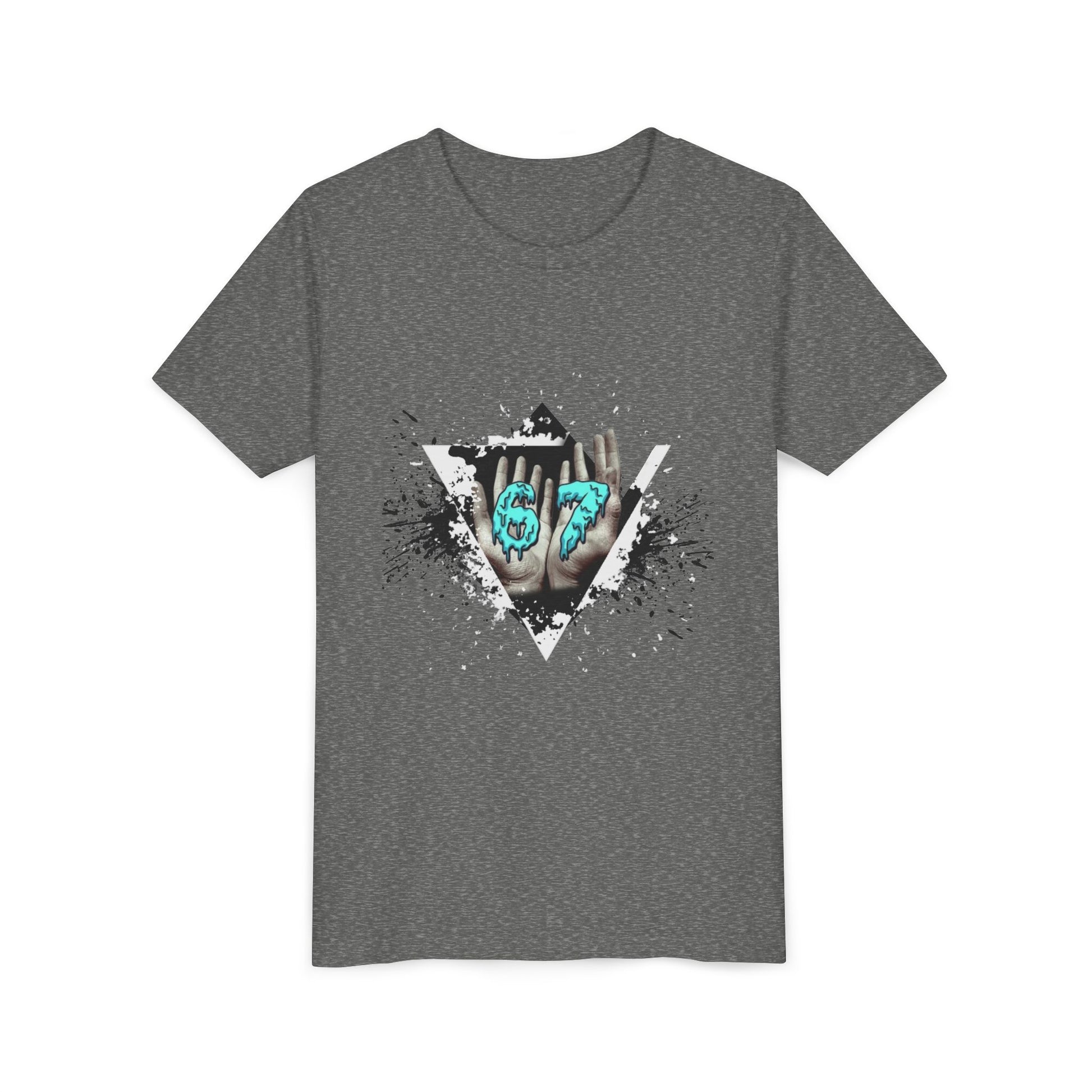 Youth Tee — Grunge 67 Graphic Tee (Aqua Neon Number)